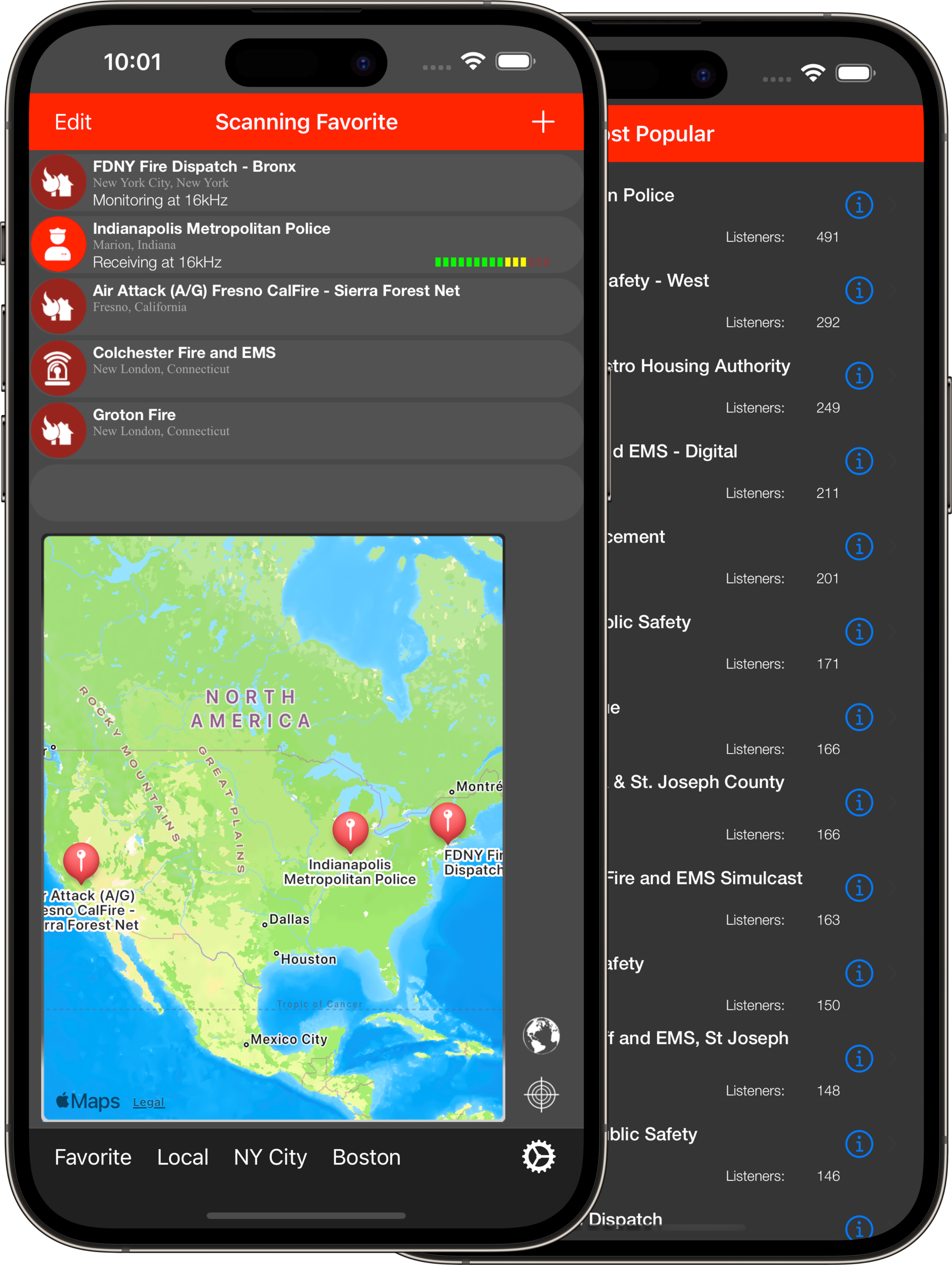 Action Scanner automatically scans through your choice of Police, Fire, EMS and other feeds from around the world, simultaneously monitoring up to 6 feeds at a time. Now you don't have to miss any of the action, be it next door or across the country!